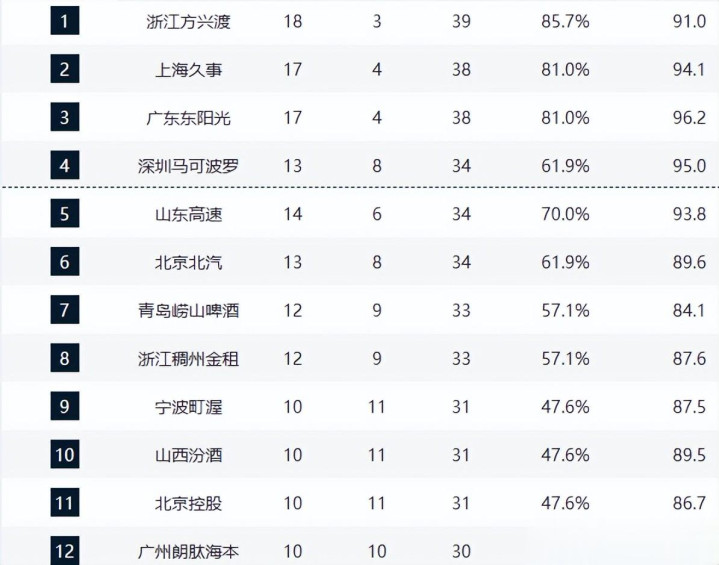 随着本轮比赛结束,爆冷输球五连败的青岛,已经下滑到第七名,之前青岛也是第一梯队的豪门,近期表现不佳;上海队复仇深圳后,目前排名第二,这还是少赛一轮的情况下,已经反超广东队了;辽宁队这边本轮输给宁波,目前已经掉出前十二,四冠王也掉队了;而昔日总冠军四川,目前赛季21连败一胜难求!CBA排名更新如下: